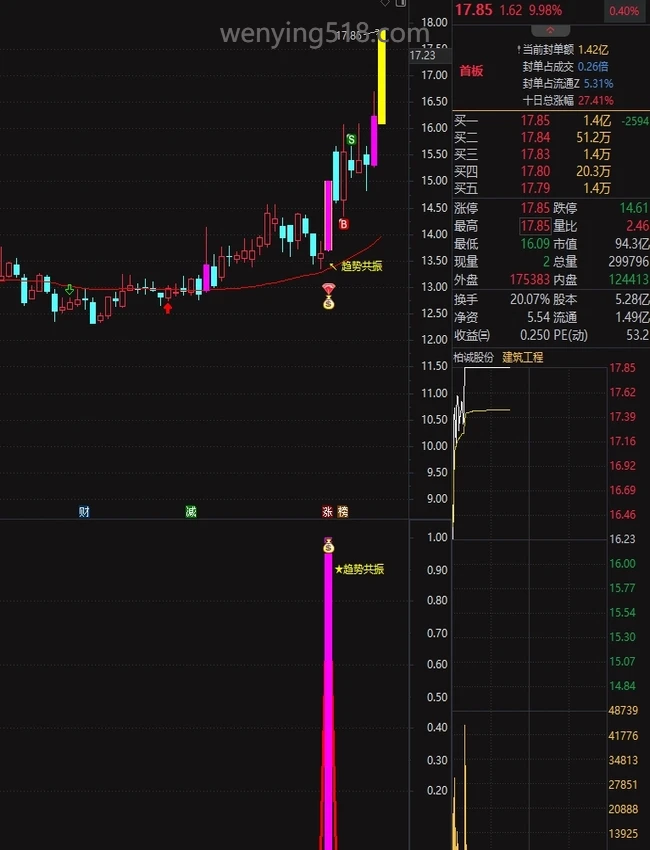 核心用途:筛选「量价共振 + 趋势突破 + 主力筹码异动」的强势股,通过主图可视化标注提示交易信号。